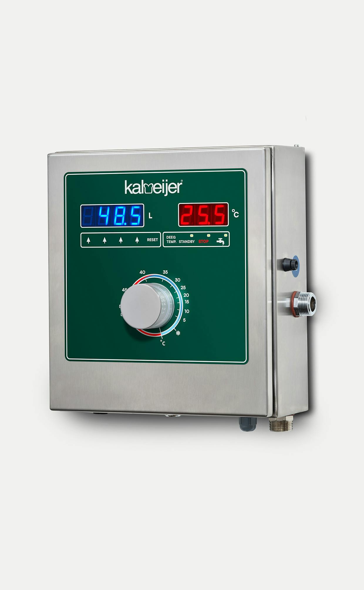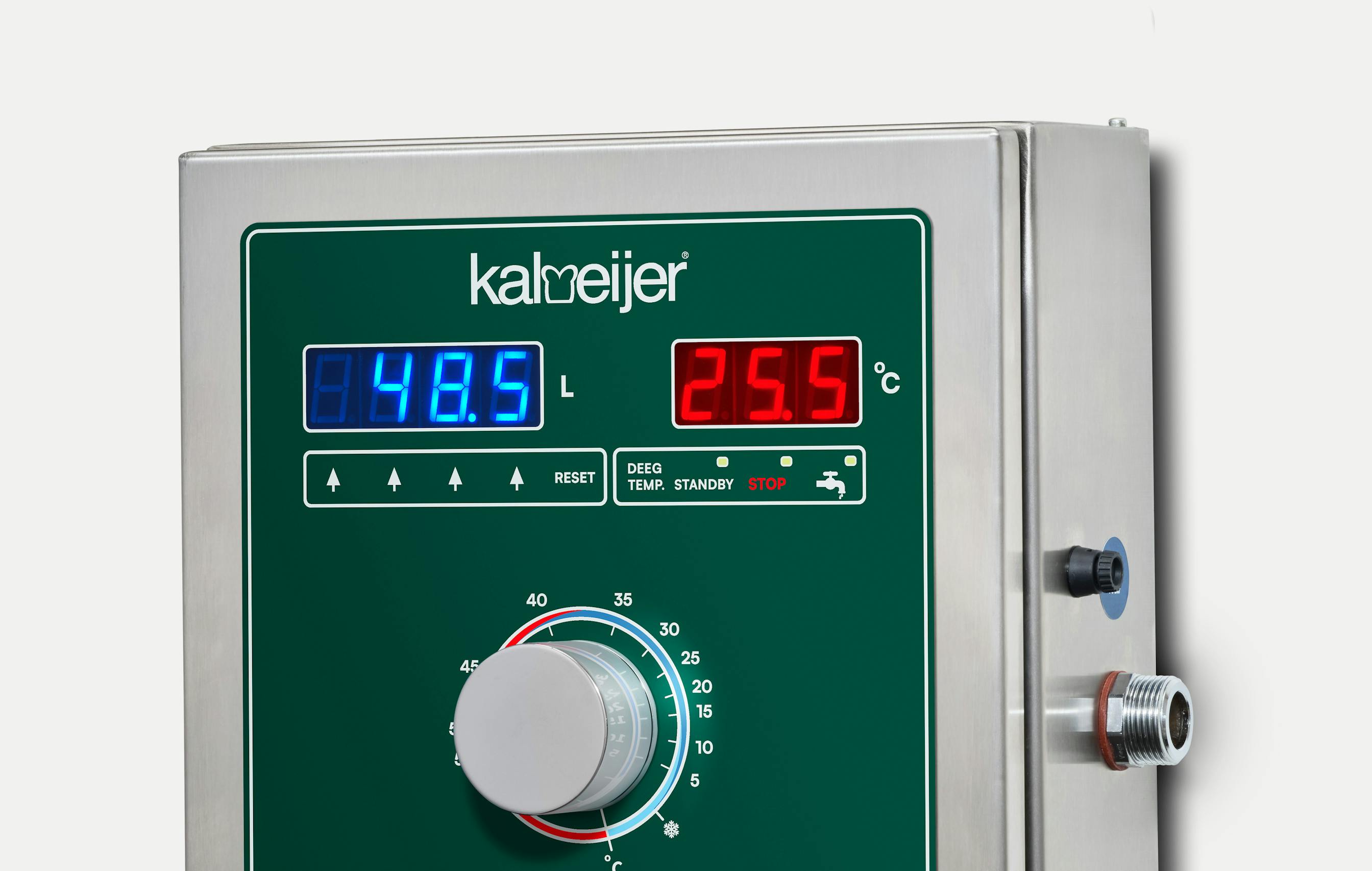De KWD-2 maakt gebruik van een industriële thermostaat die een stabiele uitlaattemperatuur garandeert, inclusief waarden onder 3°C.