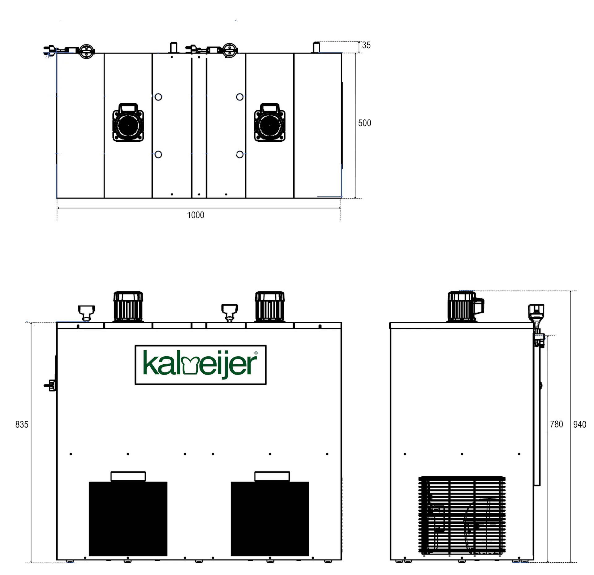 535 mm / 1000 mm / 940 mm